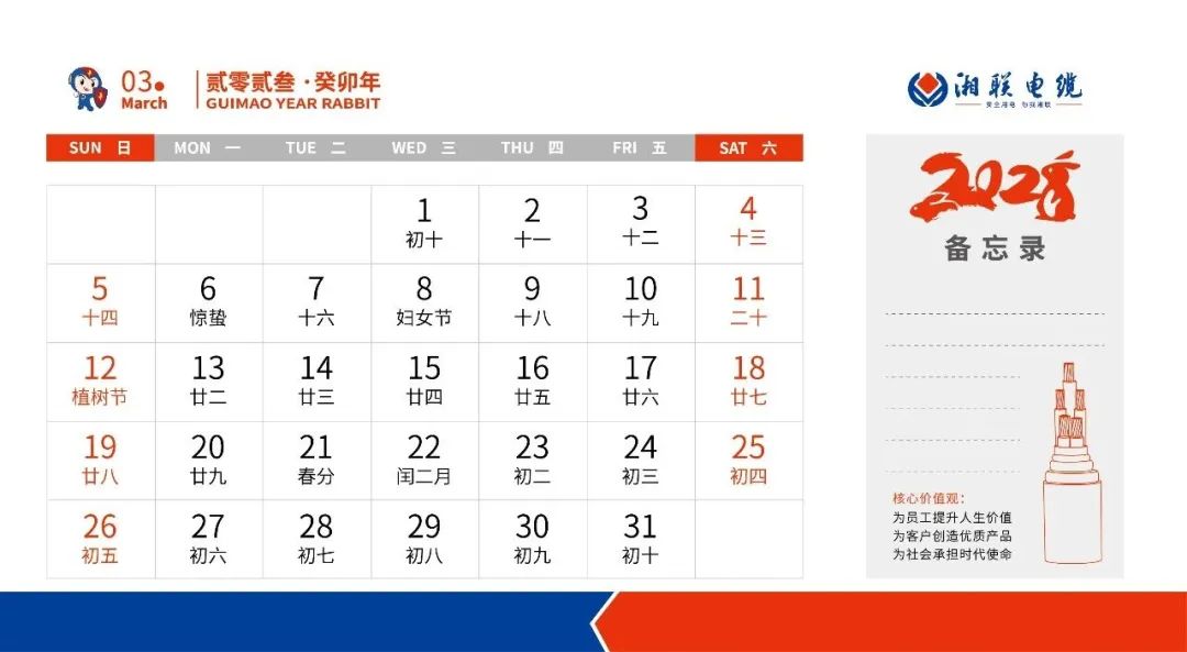 敬呈2023年湘聯(lián)電纜月歷