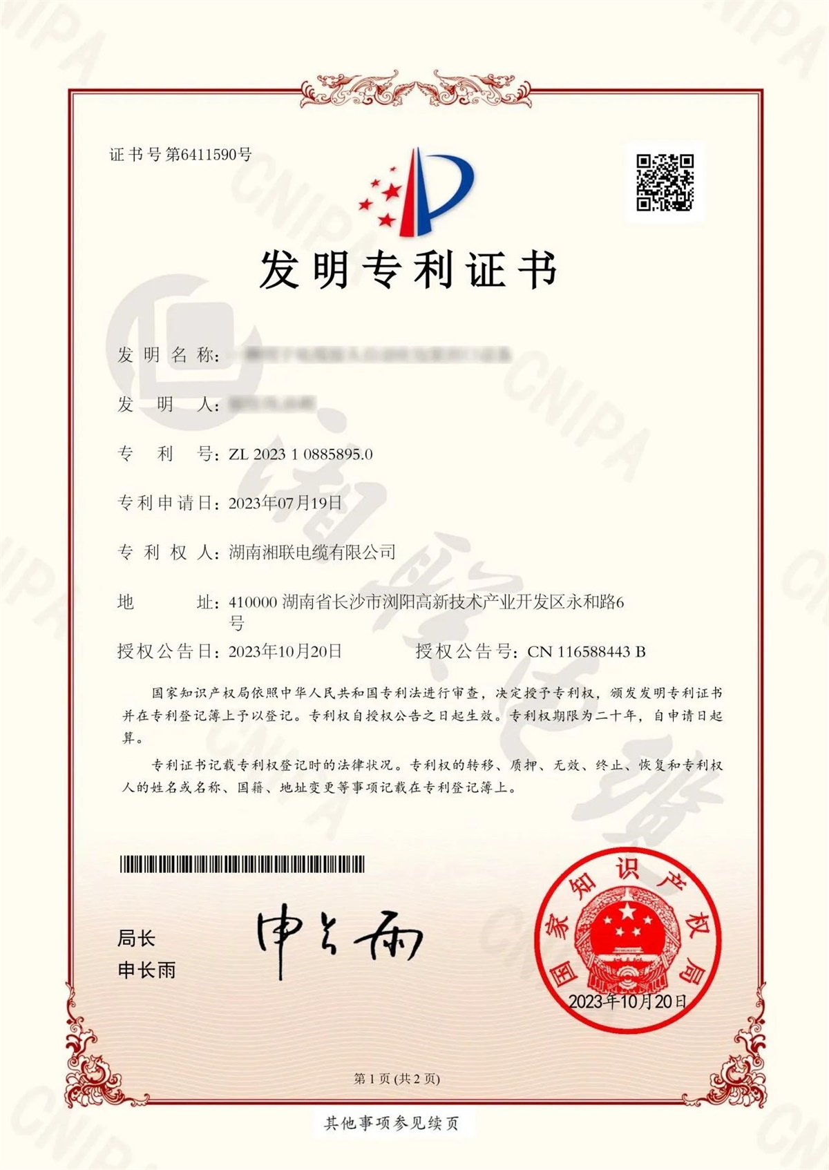 點(diǎn)贊!湘聯(lián)電纜再獲六項(xiàng)國(guó)家專(zhuān)利