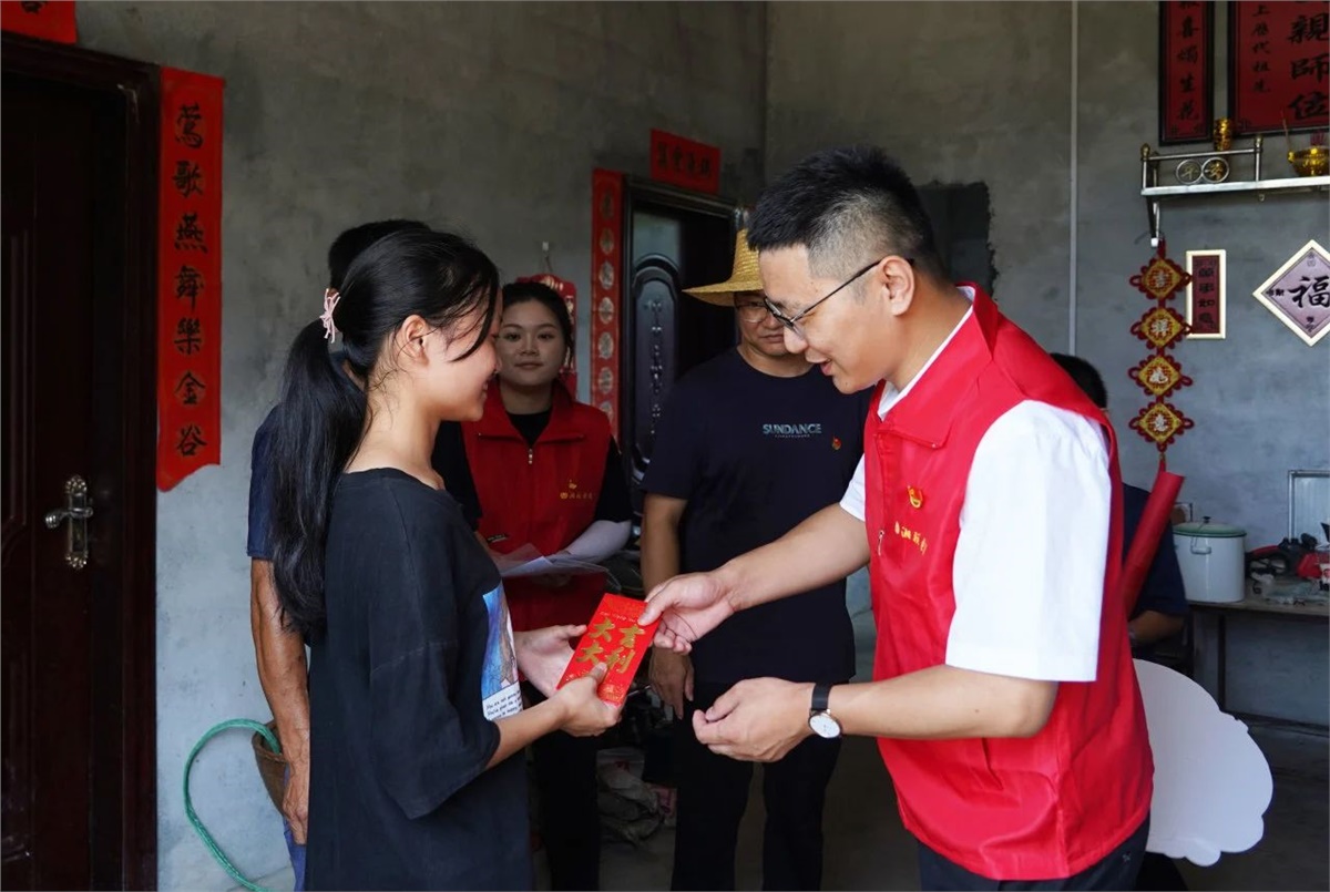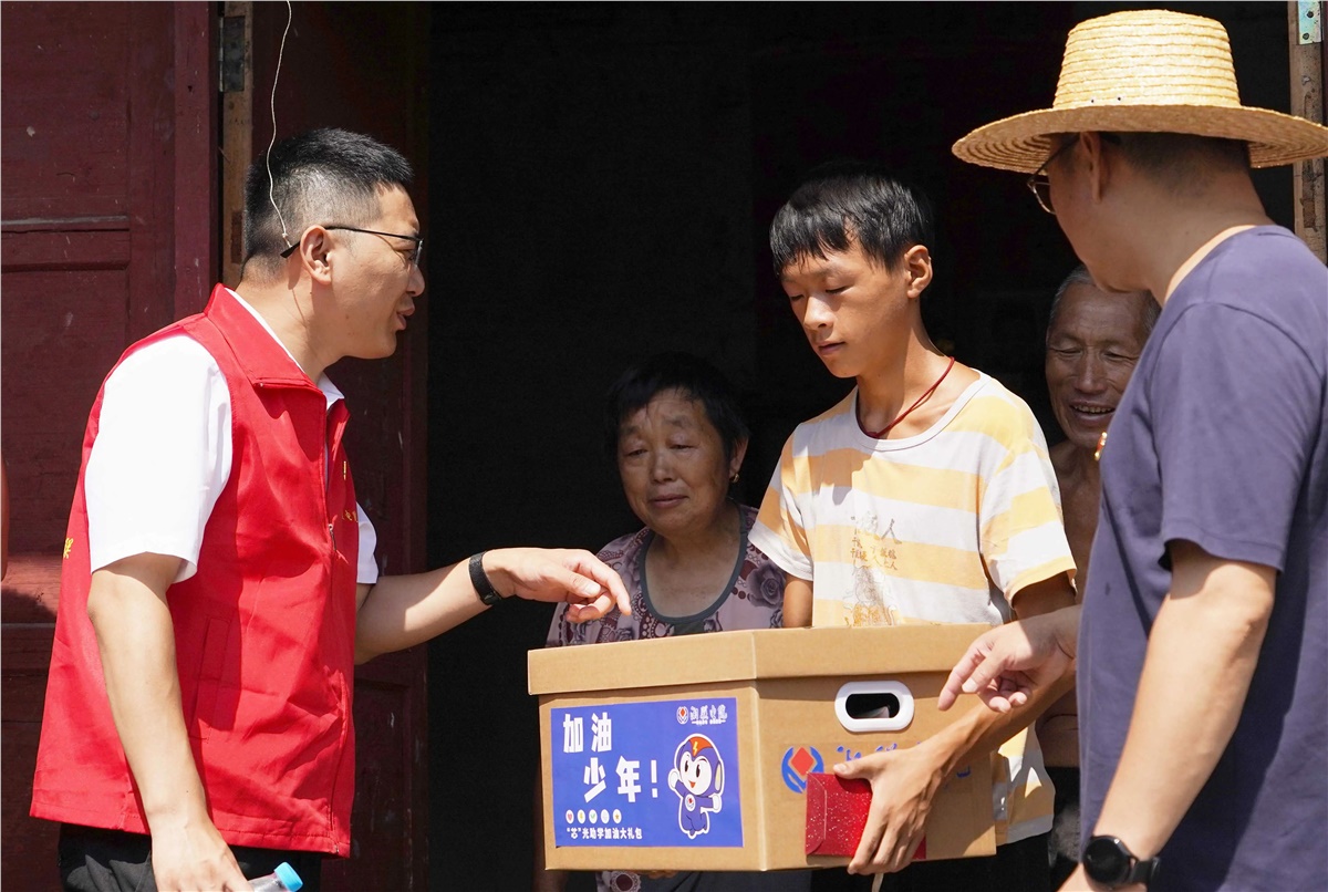 8月23日,在當地領導干部的陪同與幫助下,湘聯電纜“芯”光助學基金會的志愿者們對苗兒灘鎮(zhèn)的6個村,8個家庭進行了實地走訪,并將“芯”光助學基金和加油大禮盒送到了孩子們手中。