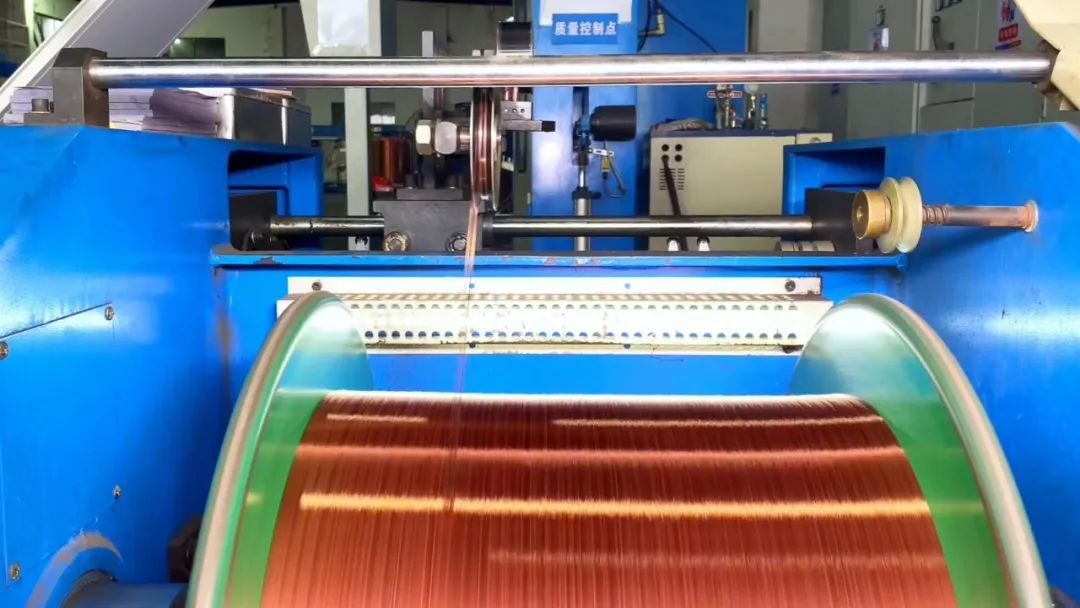 ▲拉銅車間班組成員正在進行機器調(diào)試