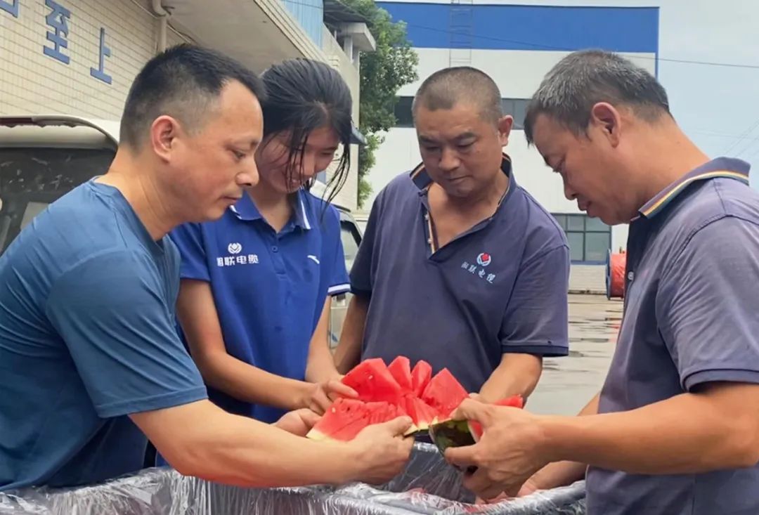 面對高溫天氣,湘聯(lián)電纜領導高度重視員工生命安全,并采取多項措施幫助員工應對高溫生產(chǎn)工作,如配備防暑降溫的藿香正氣水、涼茶等物品,同時堅持開展夏日送西瓜的員工福利活動,預防高溫中暑。