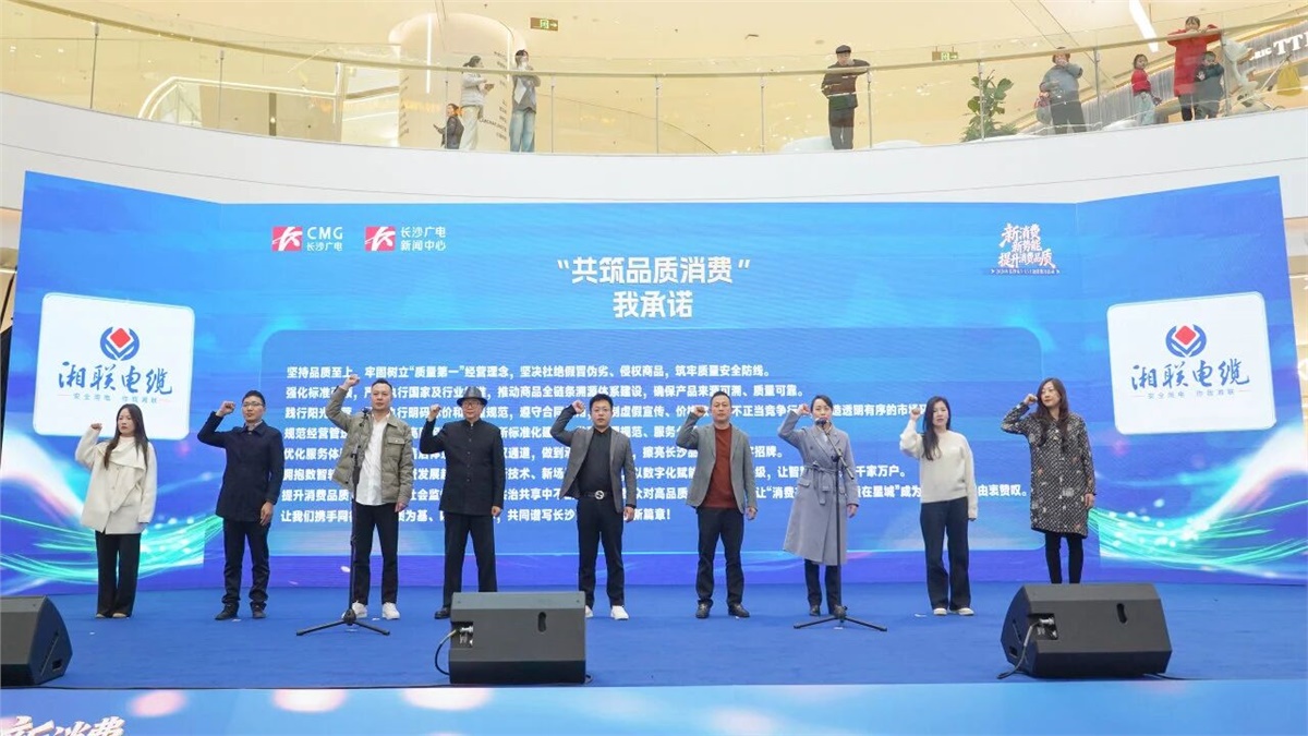 在活動啟動儀式上,湘聯(lián)電纜與其他重點企業(yè)代表共同登臺,鄭重宣讀了 《共筑品質(zhì)消費》承諾宣言。一句句鏗鏘有力的誓言,不僅是對廣大消費者的莊嚴承諾,更是企業(yè)堅守“誠信經(jīng)營、品質(zhì)為先”的初心寫照。湘聯(lián)電纜以實際行動表明,將始終把產(chǎn)品質(zhì)量和消費者權(quán)益放在首位,為構(gòu)建健康、有序、可持續(xù)的消費市場環(huán)境不懈努力。