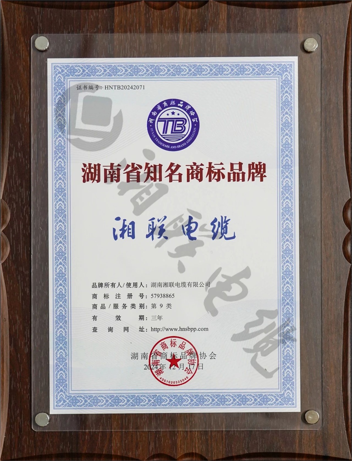本屆年會(huì)以“誰為湖南贏得尊敬”為主題,旨在樹立行業(yè)標(biāo)桿,傳遞榜樣力量。會(huì)上,湘聯(lián)電纜獲評(píng)2024年第二批湖南省知名商標(biāo)品牌,一同入選的還有唐人神、旺旺食品等知名品牌。