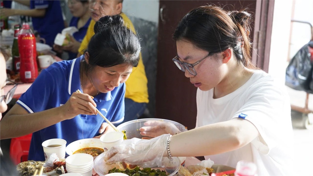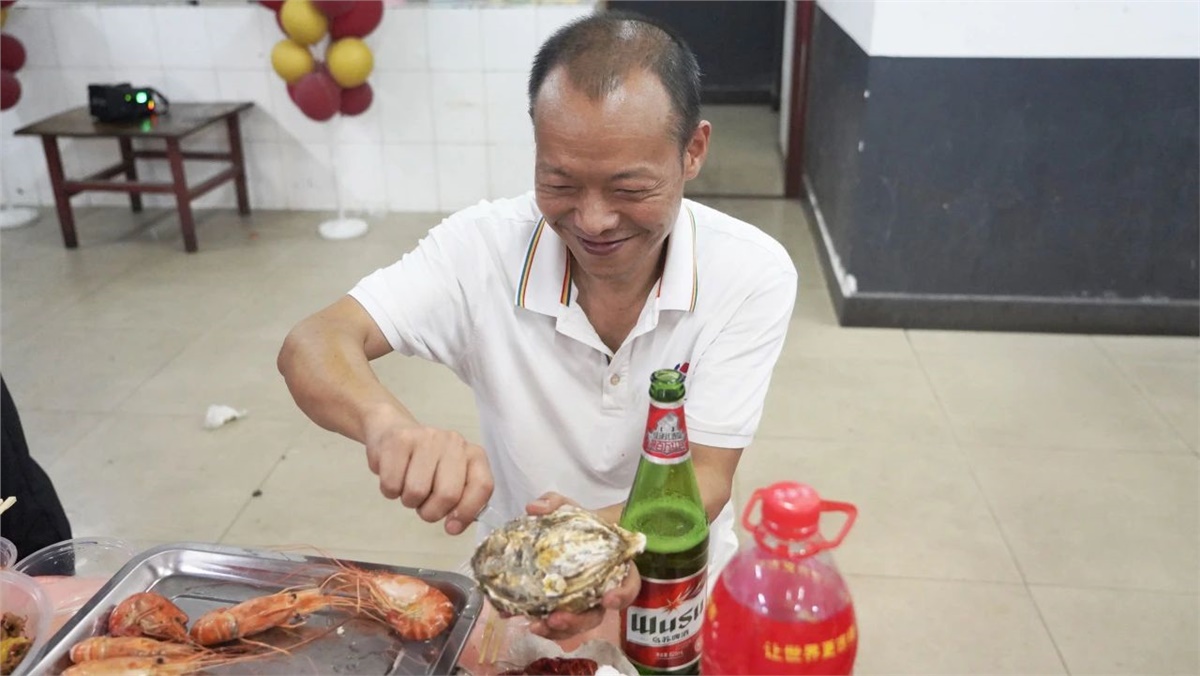 踏入餐廳,映入眼簾的是一盤盤美味的龍蝦、生蠔和飄香四溢的熱鹵、精致可口的小菜,還有清熱解渴的西瓜、冰鎮(zhèn)涼茶等。大家歡聚員工餐廳,圍桌而坐,歡聲笑語(yǔ)不斷,鮮嫩可口的海鮮在味蕾上綻放,一次次舉杯飽含喜樂、一聲聲歡笑傳遞幸福。